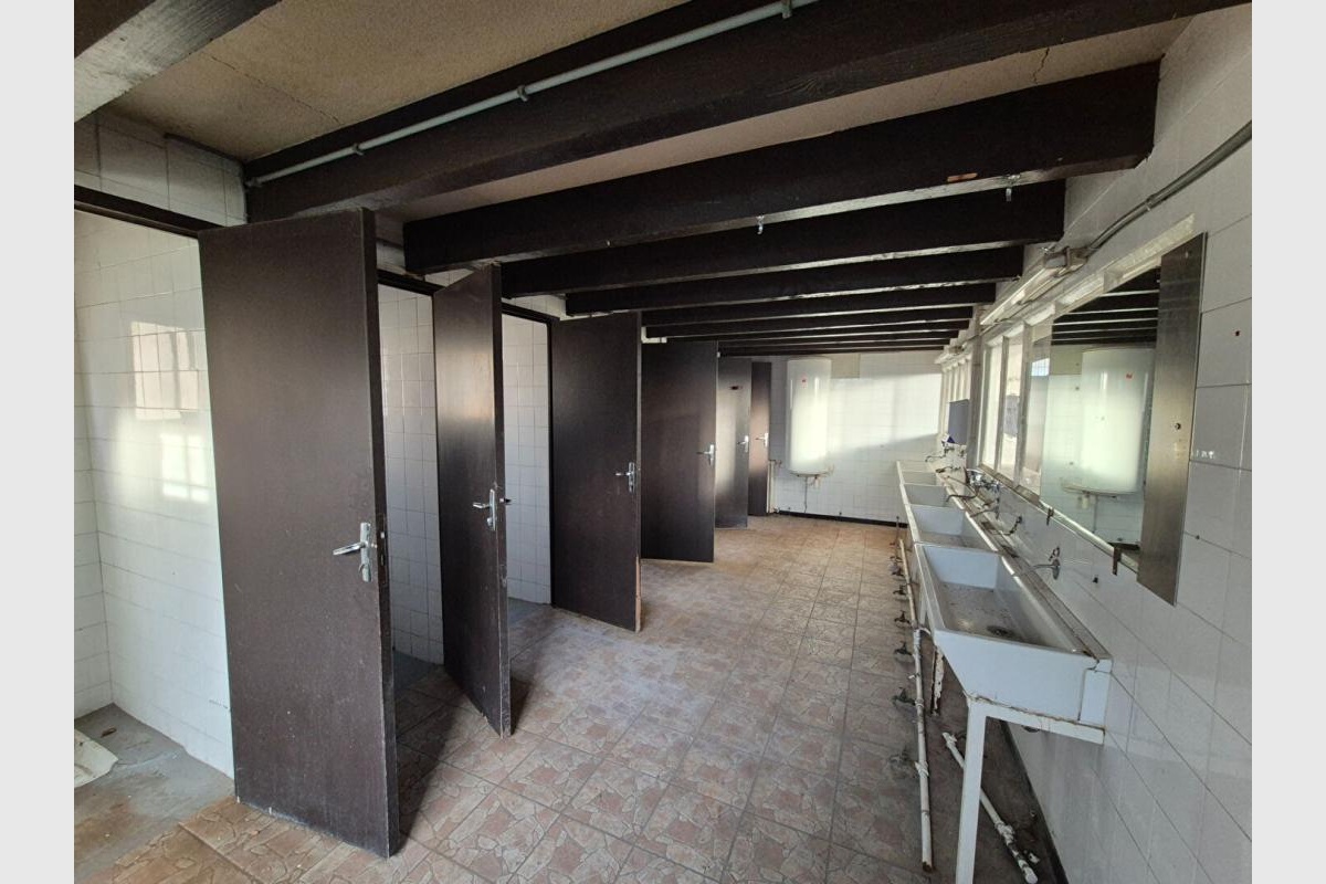 Locaux sanitaires (hommes/femmes) environ 82 m² avec douches, WC, vestiaires.
