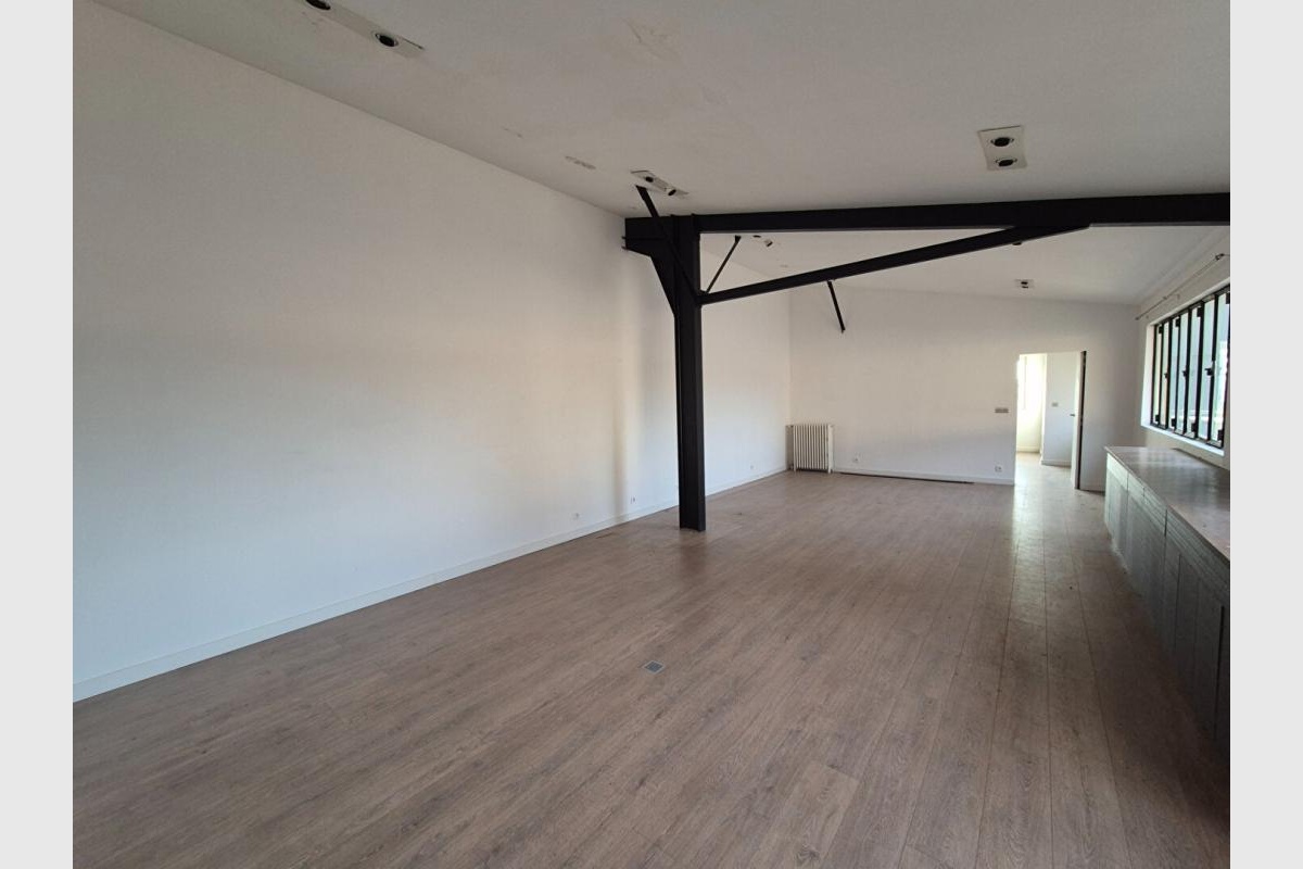 Un plateau de bureaux d’environ 100 m² au 1?? étage avec sanitaire et chauffage.