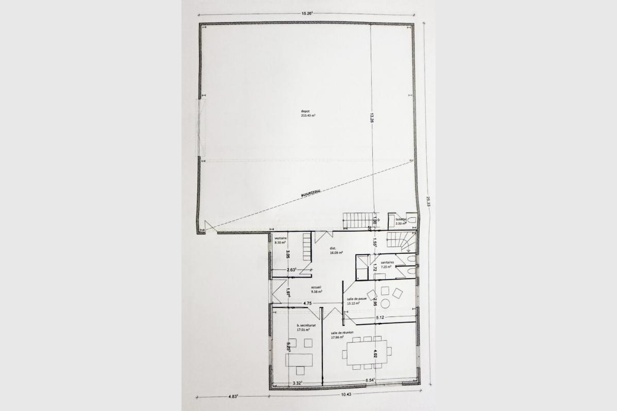 D’un entrepôt de 215 m² et d’une hauteur de 7 mètres, d’un espace bureaux de 280 m² .