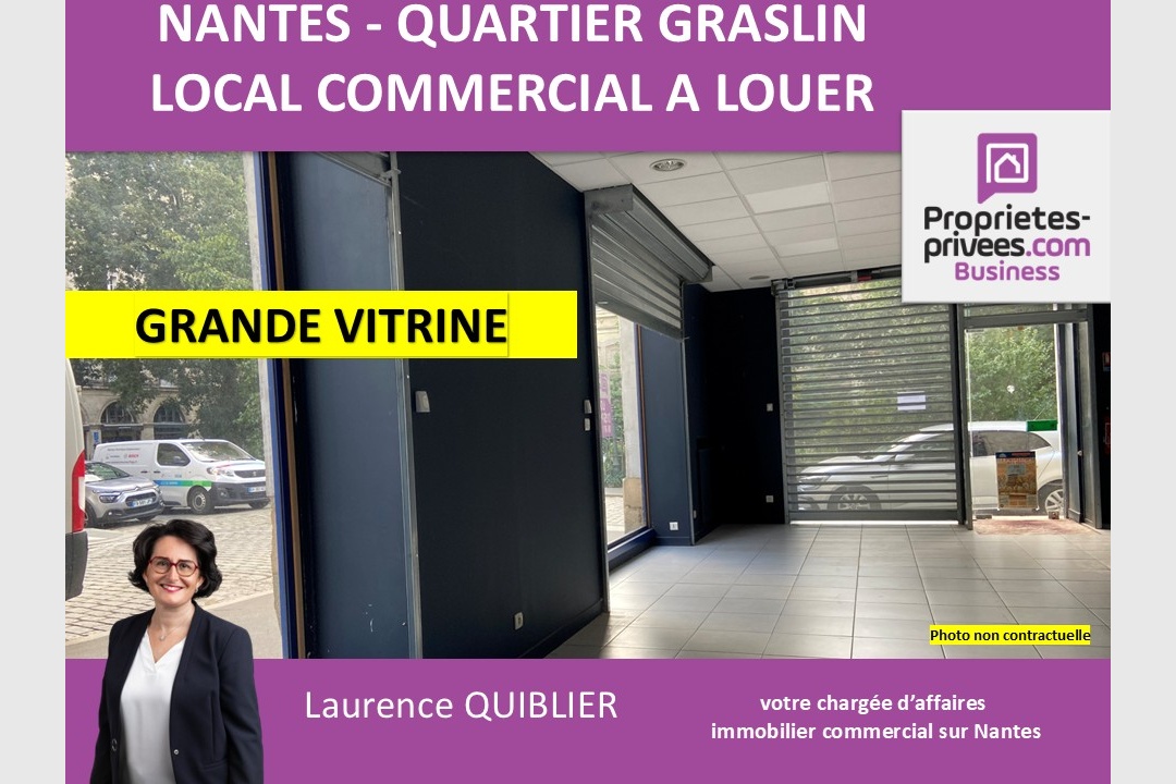 Laurence QUIBLIER vous propose à NANTES CENTRE VILLE, ce local commercial à louer de 90 m², situé à proximité immédiate du Muséum d’Histoire Naturelle dans le quartier Graslin, en plein coeur du centre-ville de Nantes. Un emplacement stratégique, dans un environnement commercial et artistique, mixant flux piétons et voitures dans cette rue pavée. La boutique offre un linéaire vitrine d’angle exceptionnel de 9 m avec une belle hauteur sous plafond de 3.5 m, rideaux de fer électriques et carrelage au sol, offrant un fort potentiel commercial. Loyer mensuel 1630 euros HC sans TVA. Honoraires agence en sus 4891.75 euros HT à la charge du locataire, nouveau bail possible.