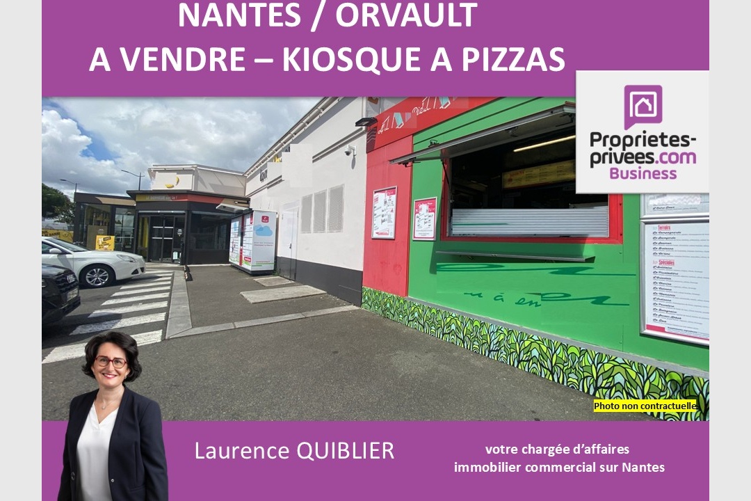 Laurence QUIBLIER vous propose à NANTES – ORVAULT ROUTE DE VANNES, ce fonds de commerce kiosque à pizzas, idéalement situé à proximité immédiate du tramway ligne 3 à Plaisance, proche Sillon de Bretagne. Profitez du parking « arrêt minute » et du kiosque à pizzas entièrement équipé et parfaitement entretenu, bénéficiant d’une clientèle fidèle et de passage, depuis 25 ans. Bail du terrain en cours avec loyer faible inférieur à 750 euros HT par mois. Ouverture midi et soir hors week-end, chiffres d’affaires 2024 : 125 000 euros. Possibilité d’extension des horaires en journée et le week-end. Fonds de commerce : 85 000 euros net vendeur, honoraires charge acquéreur 7225 euros HT en plus. Pour visiter et vous accompagner dans votre projet contactez Laurence QUIBLIER au 06.81.78.46.21 ou par courriel à l.quiblier@proprietes-privees.com. Cette présente annonce a été rédigée sous la responsabilité éditoriale de Laurence QUIBLIER agissant en tant que Chargée d’affaires indépendante auprès de la SAS PROPRIETES PRIVEES, Mandat réf : 420734. En tant que professionnelle, je vous conseille et sécurise votre projet d’installation. SAS PROPRIETES PRIVEES – ZAC du chêne ferré – 44 allée des cinq continents 44120 VERTOU, Carte professionnelle CPI 4401 2016 000 010 388 CCI Nantes-Saint Nazaire. RCS NANTES 487 624 777 (10.20 % honoraires TTC à la charge de l’acquéreur.)