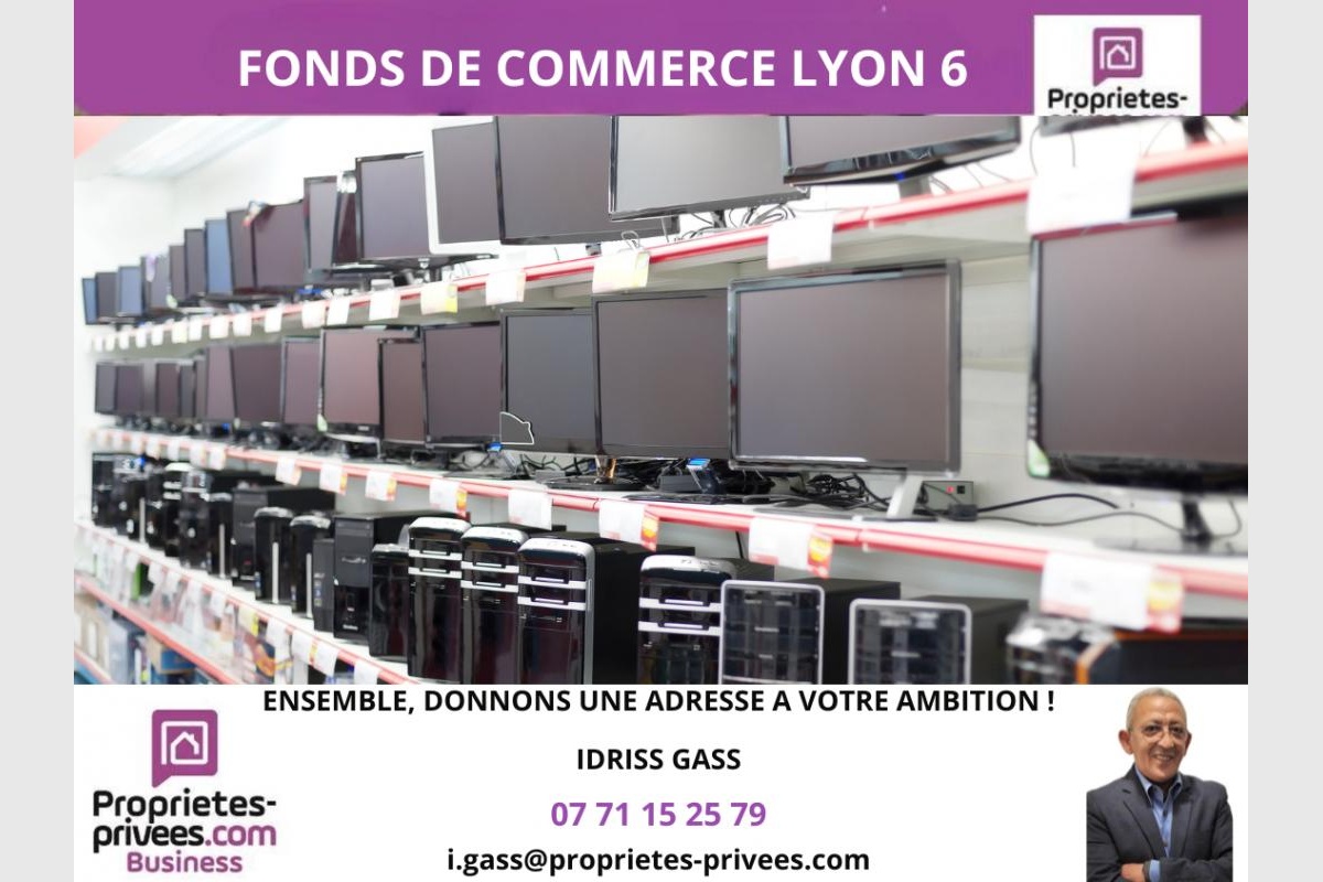 Idriss Gass vous propose à la vente un fonds de commerce spécialisé dans la vente de matériel informatique, téléphonie et accessoires, idéalement situé Cours Lafayette, en plein coeur du 6è arrondissement de Lyon, sur un axe à fort passage et bénéficiant d’une excellente visibilité.