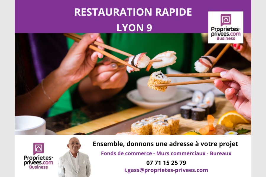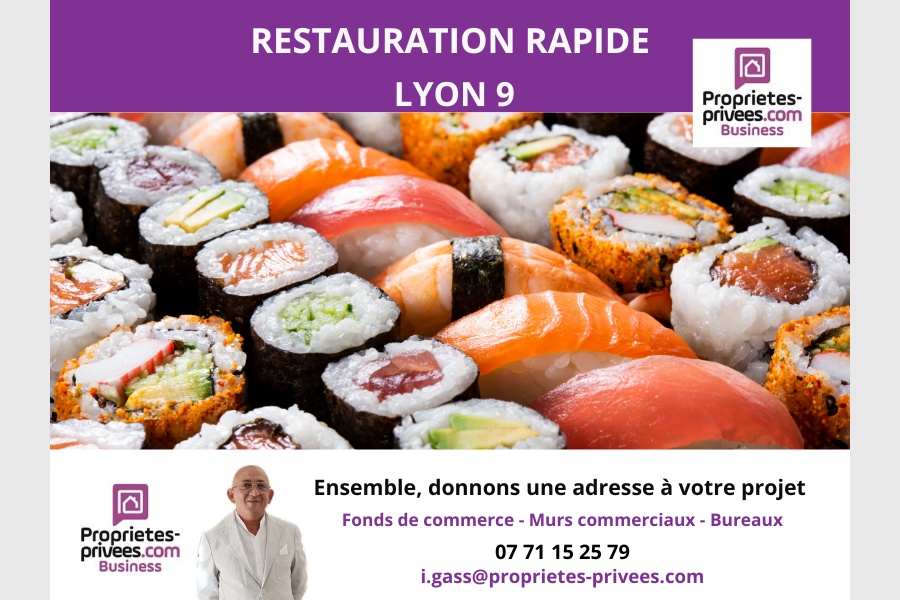 Idriss Gass vous propose à la vente le fonds de commerce de ce restaurant de restauration rapide, sur place et à emporter, idéalement situé dans le s Lyon 9, à proximité immédiate de la station de métro Valmy, dans un environnement commerçant et vivant.