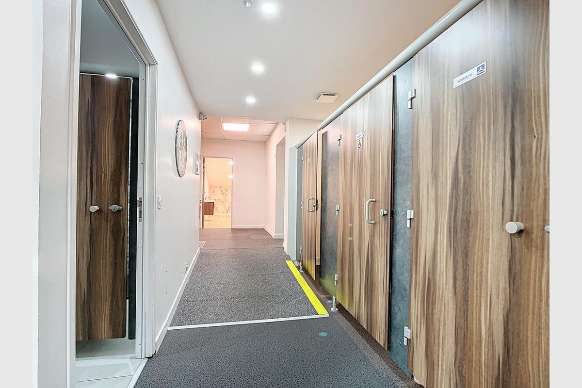 Côté technique : ascenseur, climatisation réversible, douches, sanitaire, vestiaires, vitrine.