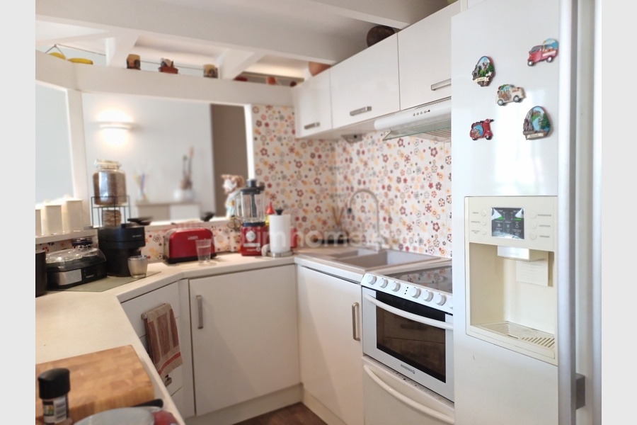 Aujourd’hui il est présenté en loft avec une pièce de vie lumineuse comprenant séjour et cuisine équipée, une vaste salle de douches avec WC et une grande mezzanine servant de chambre, avec dressing, pouvant accueillir deux couchages.