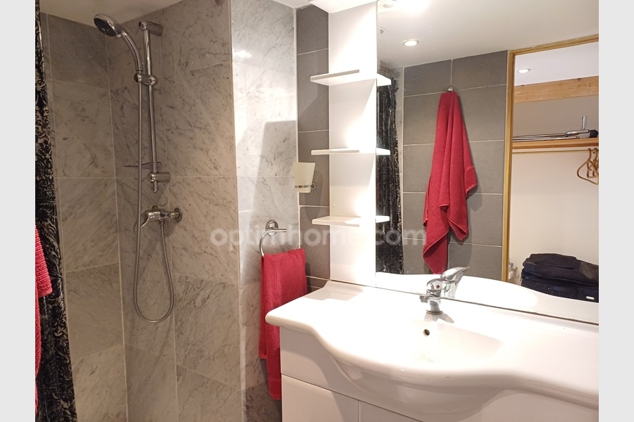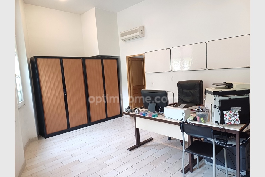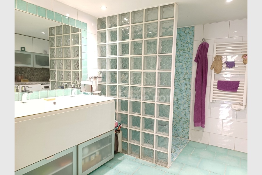 Une autre pièce, elle aussi lumineuse, est aménagée en bureau avec une salle de douches et un WC séparé.Celle-ci peut être reliée pour faire une suite parentale ou être transformée en studio pour le louer.