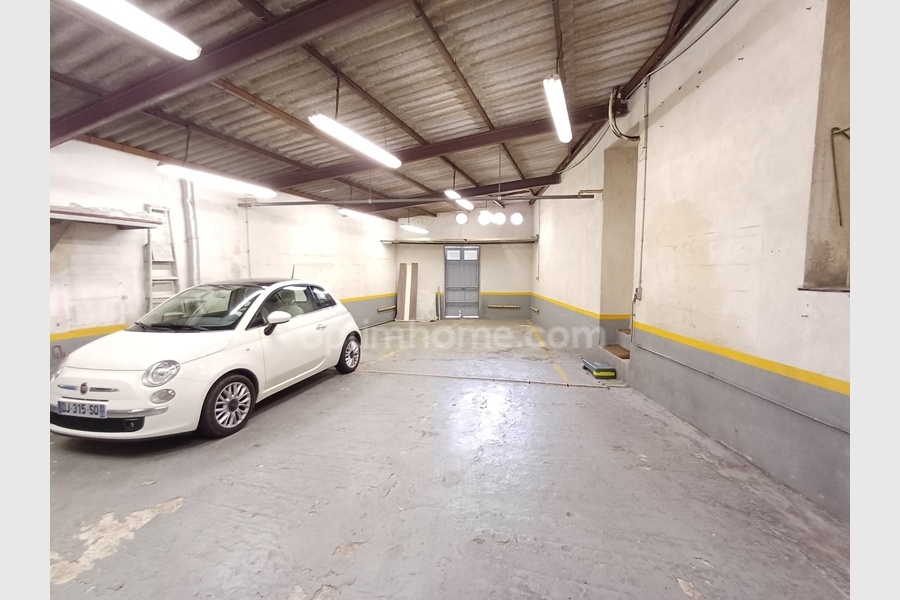 Toujours au même niveau, le reste de la surface est un grand garage/atelier, avec une large porte, permettant un stockage ou une activité artisanale, commerciale.