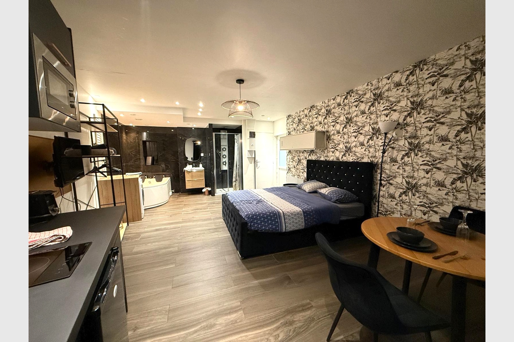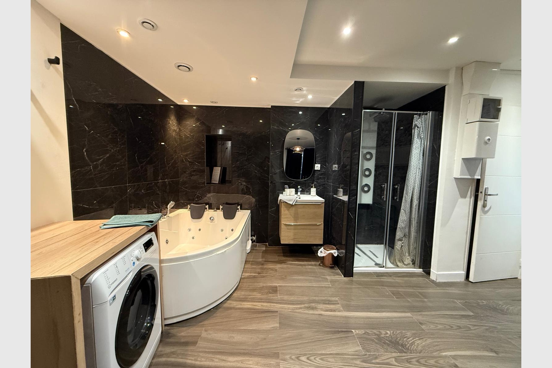 ? Une salle de bain ouverte avec baignoire balnéothérapie pour un confort haut de gamme