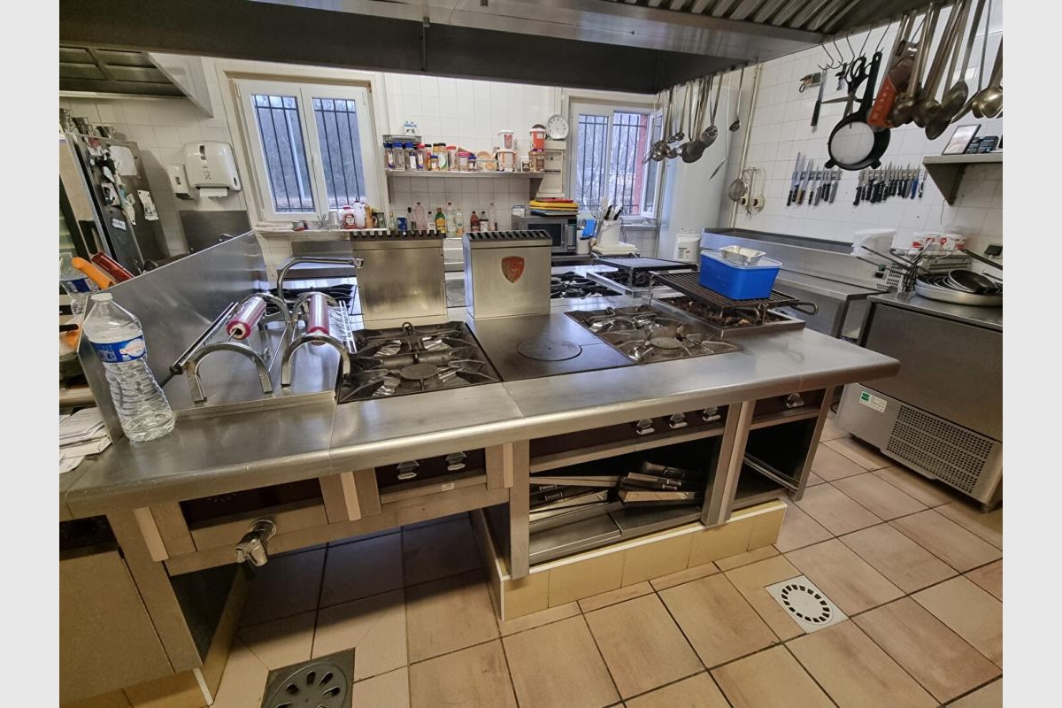 – Murs : environ 380 m2 aménagés, avec un bar, une grande salle avec 100 couverts, les cuisines, salle de plonge, des réserves avec chambres froides, ainsi qu’un appartement intégré (environ 60 m²), le tout en bon état avec climatisation.