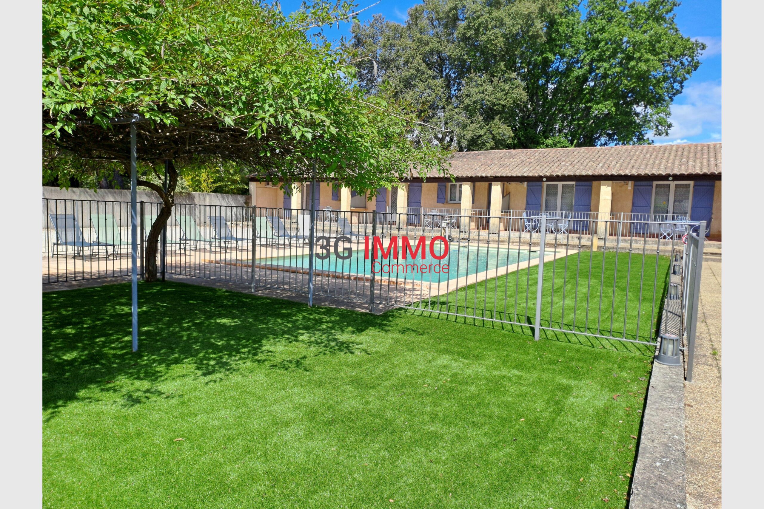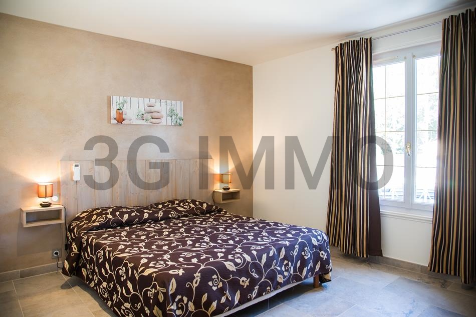 Rare dans le secteur ! Idéalement située, entre Uzès, Nîmes et Avignon, dans un village authentique et prisé à 5 minutes du Pont du Gard, avec écoles et commerces, venez découvrir cette résidence de tourisme composée d’un bâtiment d’accueil, de 13 logements de plain-pied entièrement meublés et équipés, pouvant accueillir de 2 à 6 personnes. Ils sont tous dotés d’une terrasse privative donnant sur le jardin et piscine sécurisée. Prestations complémentaires : 8 salles d’eau neuves, wifi, forage, buanderie indépendante, système de vidéo-surveillance, places de parking à proximité des appartements. L’ensemble est édifié sur un terrain plat, clôturé et arboré de 1790m2. L’activité fonctionne très bien, les clients sont entièrement satisfaits de leur séjour au sein de cette résidence. Le gros atout supplémentaire inclus dans le prix : une magnifique habitation traditionnelle meublée de 160m2 attenante à l’activité pour les futurs propriétaires souhaitant avoir un logement indépendant. La maison a été entièrement rénovée, elle possède une cuisine, grande pièce à vivre, quatre chambres avec leurs salles d’eau, un terrain de 1873m2 avec piscine. Ne passez pas à côté de cette opportunité, venez vite découvrir ce lieu d’exception. Bien non soumis au DPE