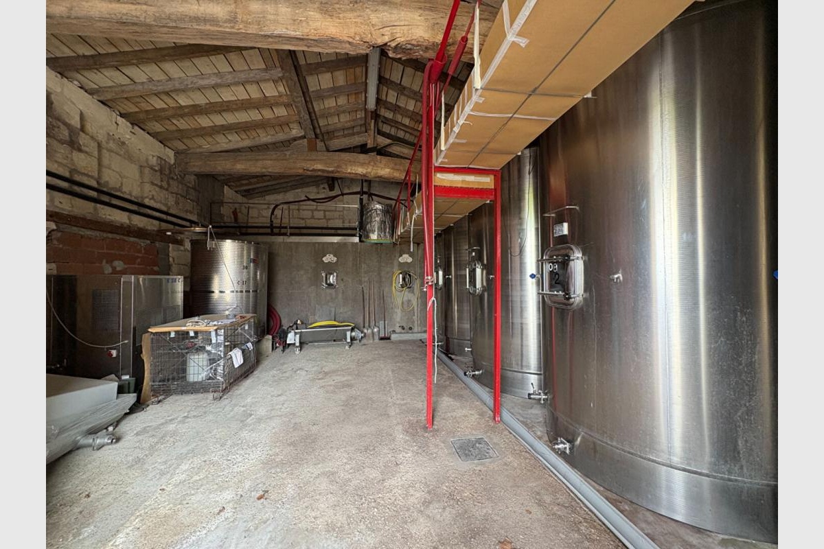 Le chai, quant à lui, est dimensionné pour accueillir la récolte de 12 hectares, offrant une capacité d’expansion considérable pour votre future production. Votre marque, déjà établie depuis longtemps, bénéficiera de cette assise historique.