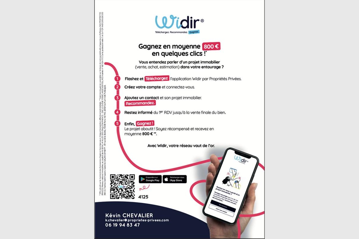 Pour visiter et vous accompagner dans votre projet, contactez Kévin CHEVALIER, au 0619948347 ou, par courriel à k.chevalier@proprietes-privees.com. Selon l’article L.561.5 du Code Monétaire et Financier, pour l’organisation de la visite, la présentation d’une pièce d’identité vous sera demandée. Cette annonce a été réalisée sous la responsabilité éditoriale de Kévin CHEVALIER agissant en qualité de conseiller immobilier indépendant sous portage salarial auprès de SAS PROPRIETES PRIVEES, au capital de 44 920 euros, ZAC LE CHÊNE FERRÉ – 44 ALLÉE DES CINQ CONTINENTS 44120 VERTOU; SIRET 487 624 777 00040, RCS Nantes. Carte Professionnelle Transactions sur immeubles et fonds de commerce (T) et Gestion immobilière (G) n°CPI 4401 2016 000 010 388 délivrée par la CCI Nantes – Saint Nazaire. Compte séquestre n°30932508467 BPA SAINT-SEBASTIEN-SUR-LOIRE (44230). Garantie GALIAN-SMABTP – 89 rue de la Boétie, 75008 Paris – n°28137 J pour 2 000 000 euros pour T et 120 000 euros pour G. Assurance responsabilité civile professionnelle par GALIAN-SMABTP n° de police 28137.J Mandat réf :446104 – Le professionnel garantit et sécurise votre projet immobilier.