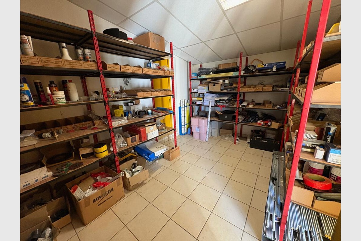 Fabrice TURPIN, vous propose ce Local d’activité comprenant un atelier de 600 m² avec 2 mezzanines de 110 et 30 m² en sus.