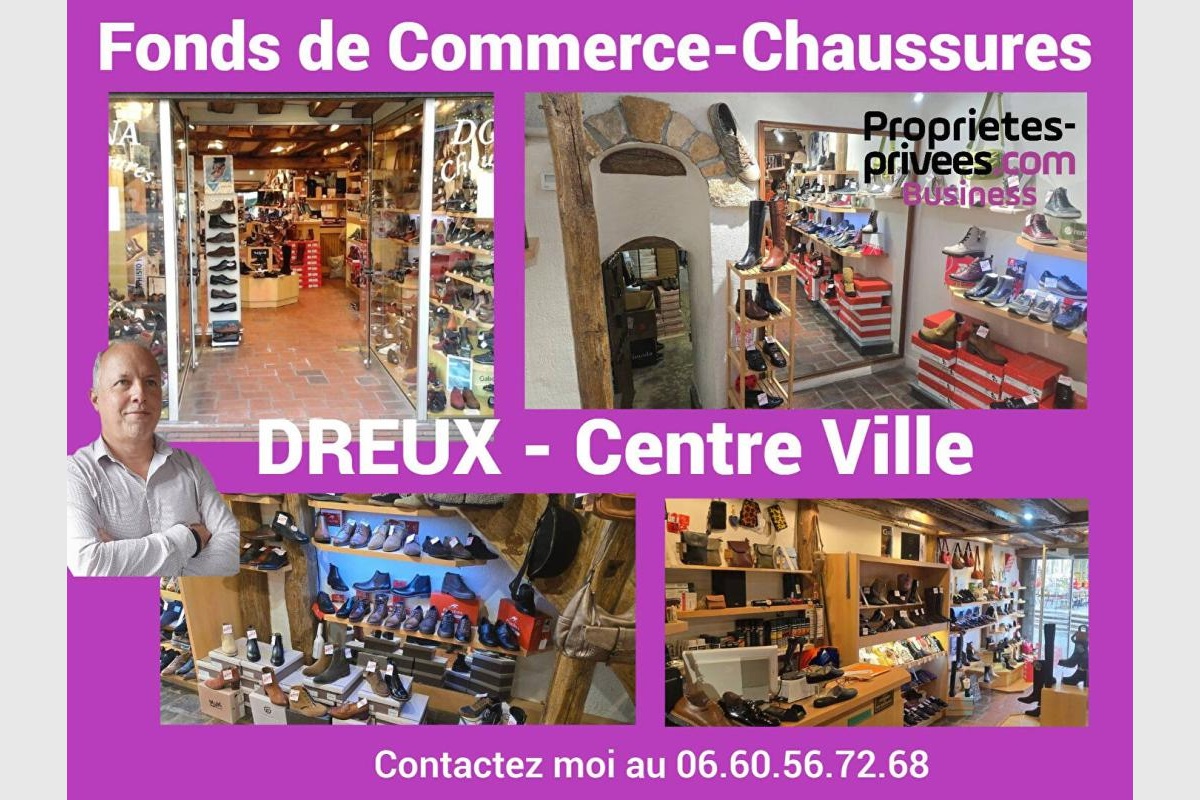DREUX 28- FONDS DE COMMERCE BOUTIQUE CHAUSSURES- 90m²-Prix: 164900 euros FAI