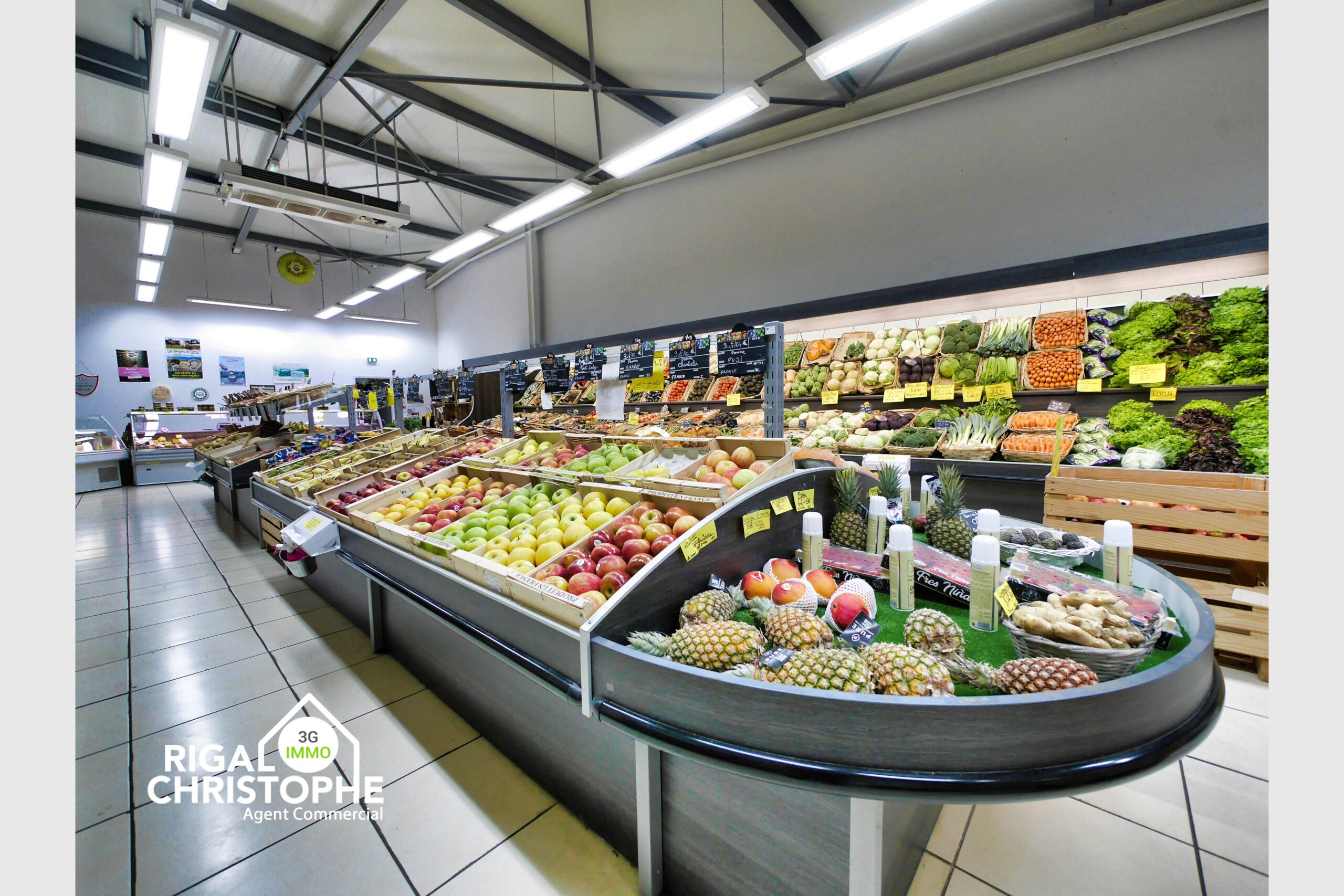 1/ Magasin de 135m² dédié à la vente de fruits, légumes et produits alimentaires locaux : un véritable lieu de vie pour vos clients, avec un aménagement adapté à l’activité.