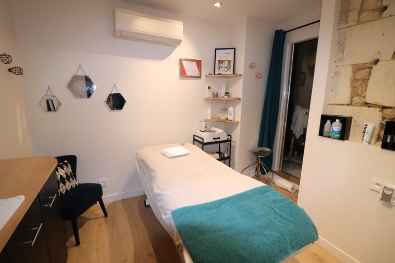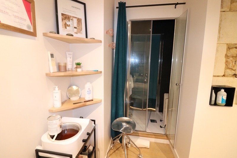 Boutique, institut avec comptoir d’accueil et la vente de produit. Le service de soins et juste en continuité de la boutique pour le silence et confort de la clientèle. 3 cabines a disposition, une douche ,toilette indépendante, une buanderie et lingerie, et une réserve. ensemble avec clim réversible.