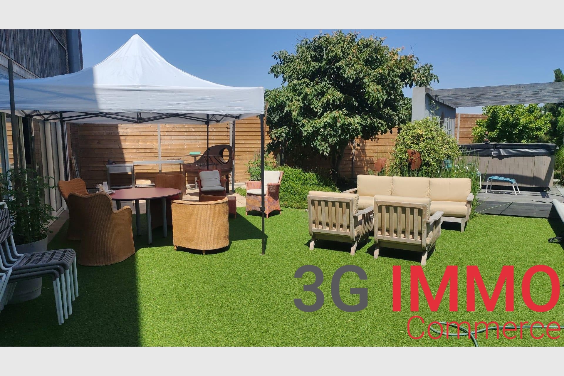 Une terrasse donnant sur une piscine chauffée et un spa parfaitement protégés des regards.