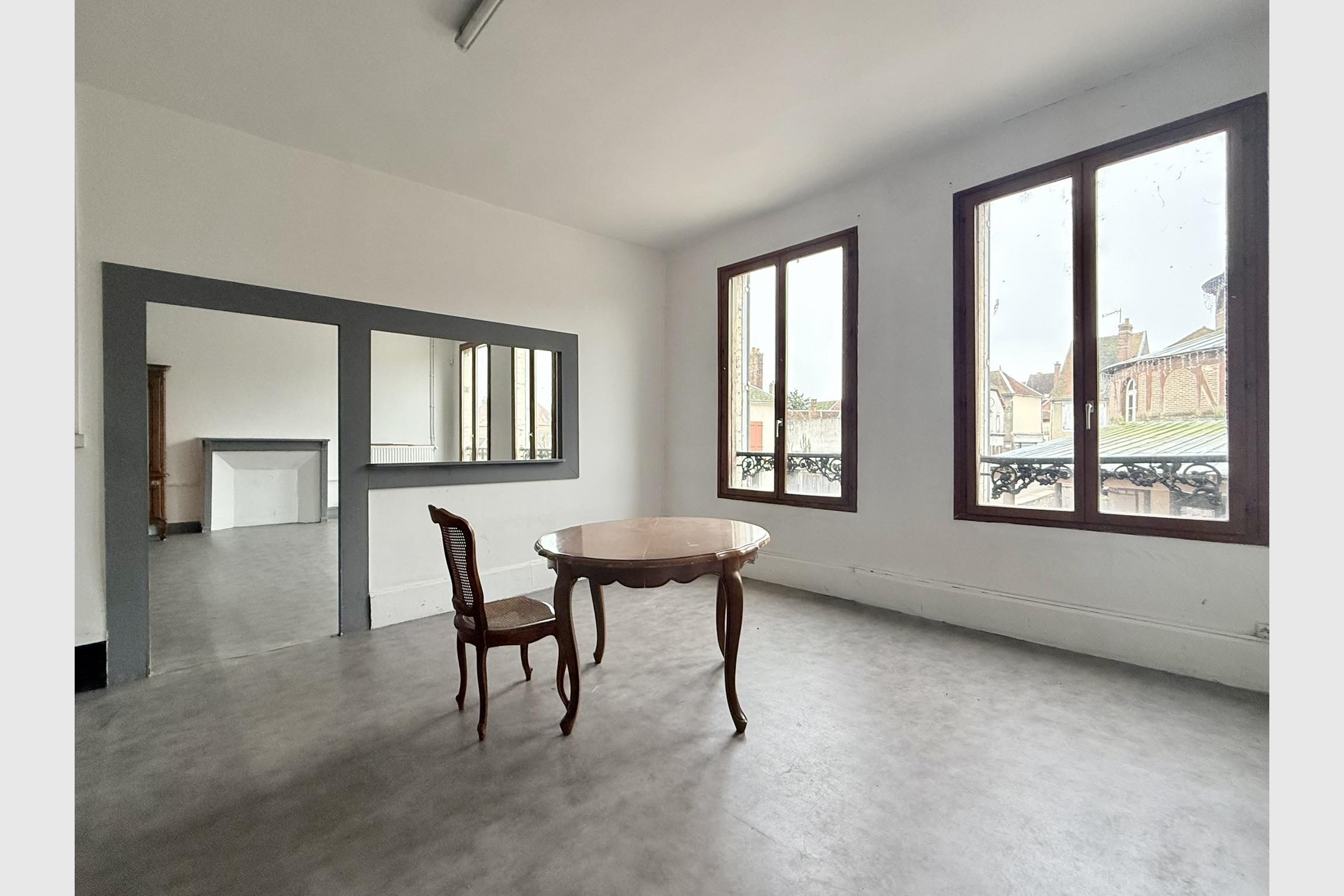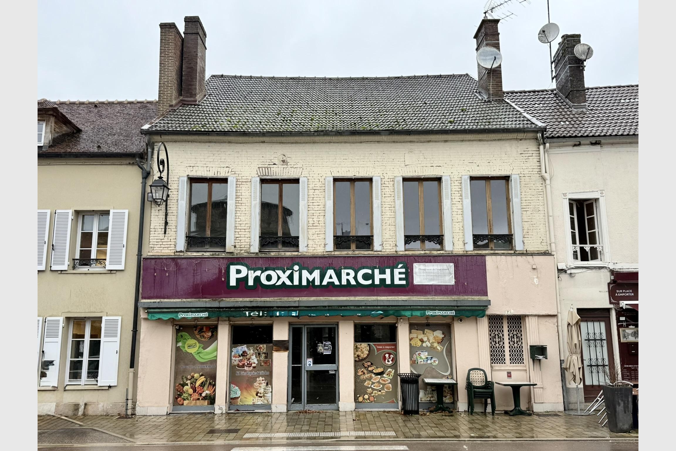 Idéalement situé dans l’Aube (10), à la limite de l’Yonne (89), en plein centre-ville d’Ervy-le-Châtel, cet ensemble immobilier bénéficie d’un emplacement exceptionnel face à la Halle historique abritant l’office de tourisme et une salle d’exposition. Cette situation de tout premier ordre offre une excellente visibilité et un fort potentiel d’exploitation. Le bien se compose d’un vaste local commercial disposant de trois accès indépendants, par la rue principale, par l’arrière ainsi que par une porte de service située dans le couloir commun, facilitant l’activité quotidienne et les livraisons. Le local comprend un espace magasin d’environ 107 m², de plain-pied sur la rue avant, avec une vitrine sur toute la façade apportant une belle luminosité, complété par un bureau, réserve ou réfectoire de 16 m² équipé d’un monte-charge ainsi que des sanitaires de 2,30 m². En sous-sol, accessible de plain-pied par la rue arrière grâce à un grand portail ouvrant sur une cour, se trouvent deux réserves, l’une de 19 m² intégrant le monte-charge, un local technique et un escalier intérieur, et l’autre de 65 m² donnant accès à une grande cave voûtée de 40 m². À l’étage, un appartement de type 4 d’une surface de 114 m² offre un accès indépendant du commerce par un couloir latéral, tout en conservant la possibilité de communication directe avec le local commercial. Il se compose d’une entrée, d’un dégagement, d’un très grand salon de 32 m² bénéficiant d’une belle vue dégagée sur la place des Halles, d’une spacieuse cuisine de 23 m², de deux grandes chambres de 15 m² et 17 m², d’une salle de bains, de WC séparés et d’une pièce chaufferie. Classé en énergie D, cet espace est prêt à être habité, mis en location ou aménagé en bureaux selon les besoins. L’ensemble présente une très belle situation, une excellente fonctionnalité et se prête parfaitement à de nombreux projets commerciaux, de services ou à un investissement locatif mixte. Pour tout complément d’information ou pour organiser une visite, n’hésitez pas à me contacter.
