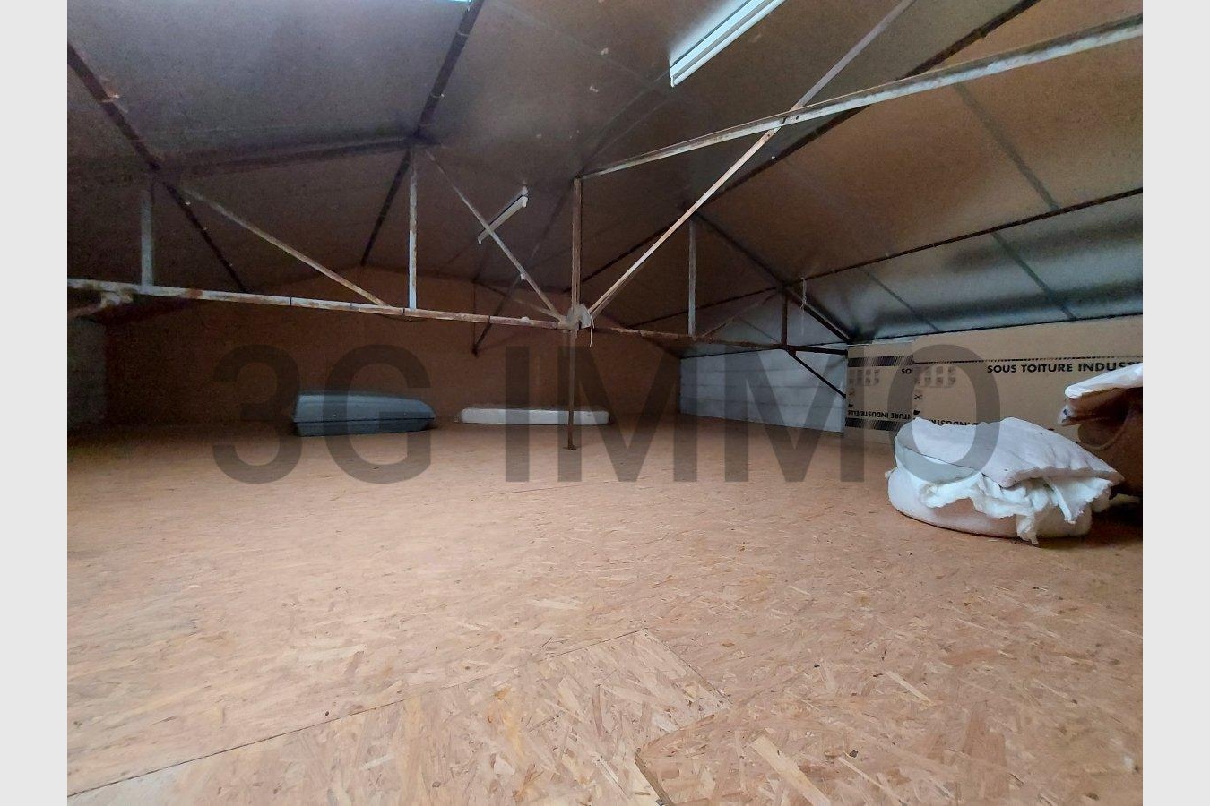 Attenant un second bâtiment pour stockage ou atelier avec une mezzanine d’environ 100 m2 au sol, il dispose d’un accès indépendant avec une porte sectionnelle.