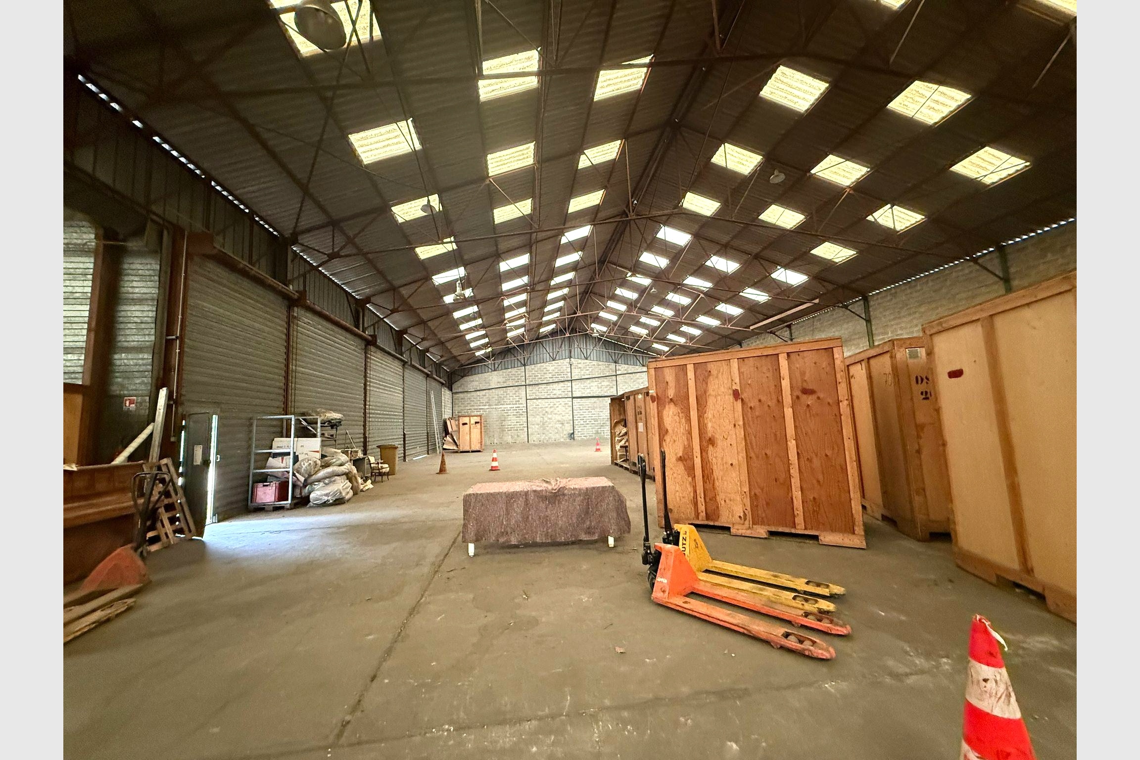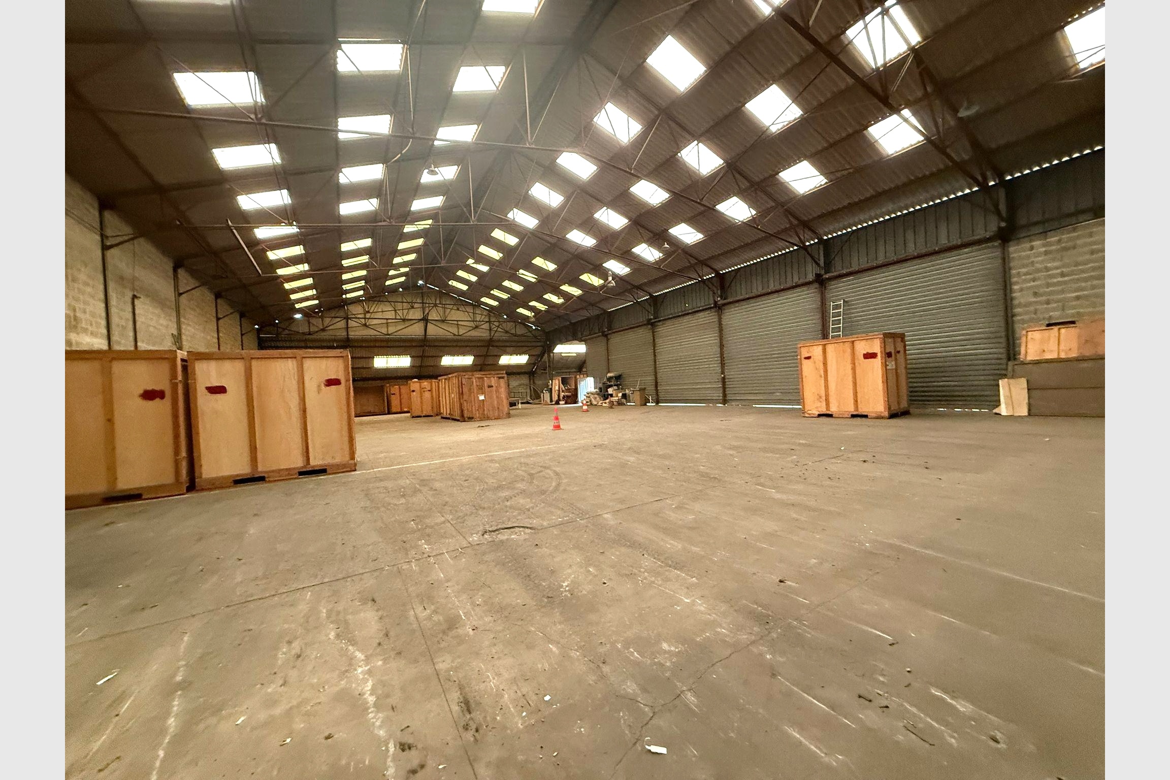 Local de 1 000 m² en forme de L, comprenant la partie face que l’on distingue sur la photo, d’environ 800 m², ainsi que le retour en L d’environ 200 m², avec une grande porte sectionnelle (5 ML x 4,5 m de large).