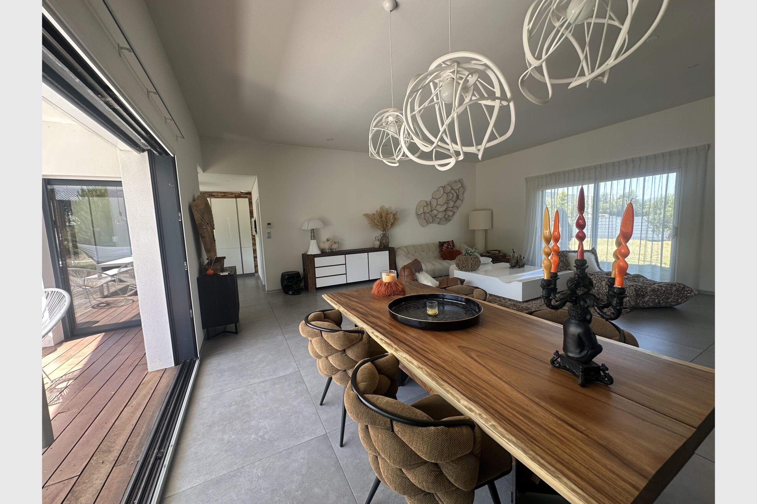 Dés l’entrée, vous serez séduit par le volume du séjour de 62 m2 baigné de lumière, prolongé par une cuisine semi-ouverte entièrement aménagée et son cellier attenant. Toujours de plain-pied, une suite parentale comprenant une grande salle de bains ainsi que son dressing. Un immense bureau s’ajoute sur ce même niveau avec une buanderie optimisée.
