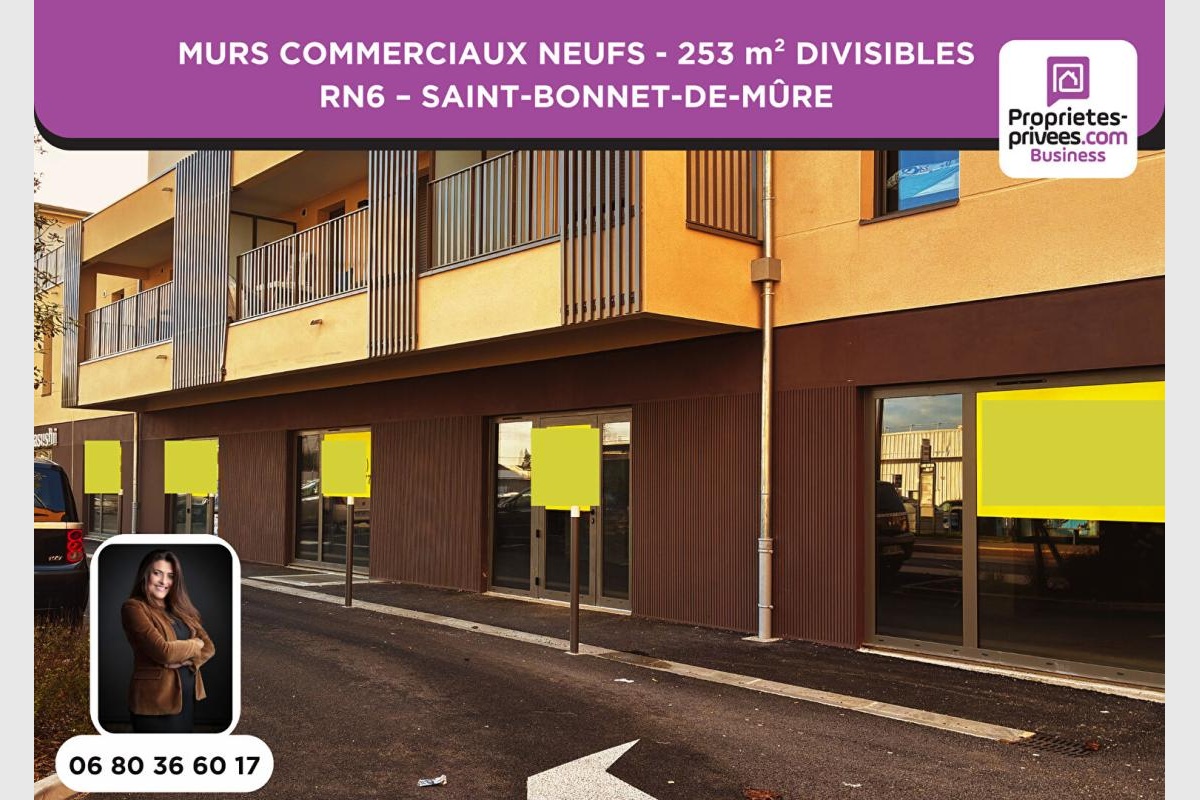 Au sein du programme neuf, à proximité immédiate du centre-bourg de Saint-Bonnet-de-Mûre et directement implanté sur l’Avenue Charles de Gaulle (RN6), axe structurant de l’Est lyonnais, local commercial de 253 m², divisible en 2 commerces indépendants de 117 m² et 133 m².