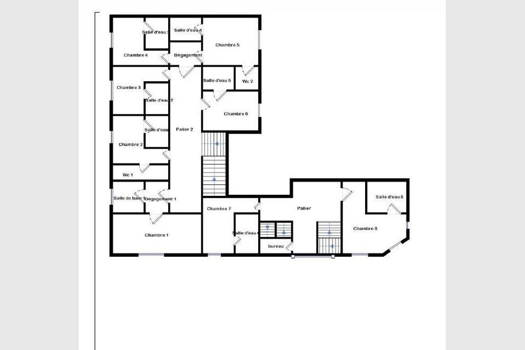 À l’étage, l’hôtel dispose de 8 chambres, accompagnées d’un logement de fonction de 62.59 m² type T3.