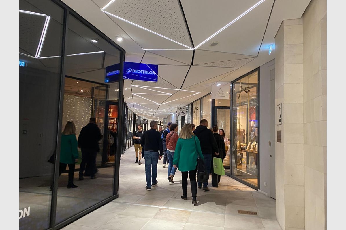 Mise en lumière par une architecture contemporaine et épurée du passage dédié, sanitaires PMR dédiés aux commerces, un ascenseur PMR desservant les 2 rues.