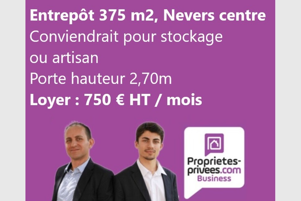 Patrick et Florent LOISY vous proposent à la location cet entrepôt de 375 m², idéalement situé en plein centre de Nevers, sur un axe très passant.