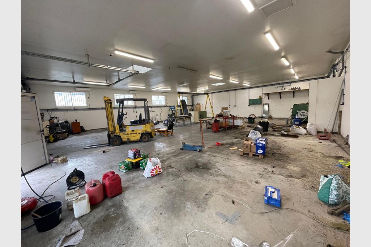 La partie bureaux de plain-pied propose différents espaces de travail pour une surface total de 160m2 environ. Cette partie pourrait être réhabilitée en maison d’habitation.
