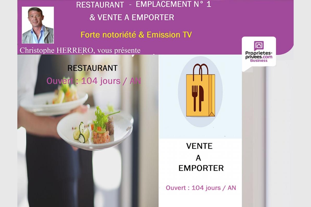 Christophe HERRERO à le plaisir de vous présenter à Palavas Les Flots 34250, station balnéaire proche de Montpellier un restaurant situé “Rive Gauche” dans une rue commerçante, bouillonnante d’activité et à forte fréquentation.