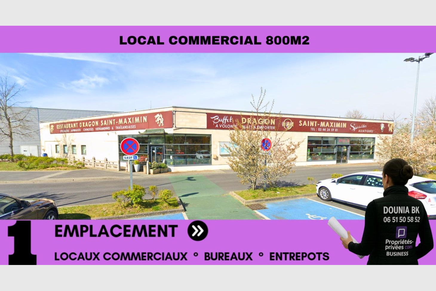Dounia BK vous propose à la location un local commercial restauration avec extraction de 801 m² ? visibilité D1016 ? zone ultra dynamique.