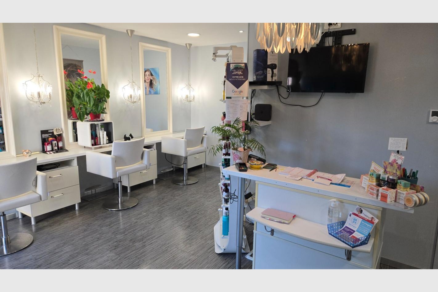 Cet établissement de très bonne réputation avec clientèle fidèlisée, dispose d’une salle de 36 m² avec 3 postes de coiffage ( possibilité 4 ), 2 fauteuils massant/bacs à shampoing, pièce buanderie/stockage. Wc séparé. Local et matériel en excellent état. Très belle présentation.