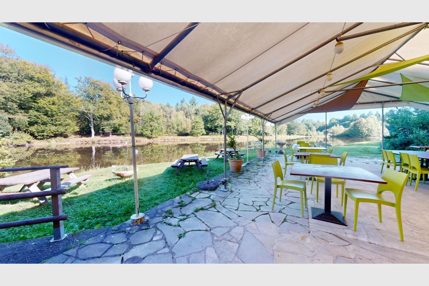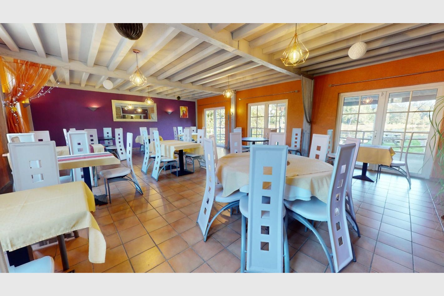 Une salle d’environ 65 M² , une terrasse avec tente de réception d’environ 120 m² , une terrasse abrité d’environ 32 M² , une salle de bar d’environ 38 m² et une cuisine d’environ 35 m². (matériel d’exploitation inclus)
