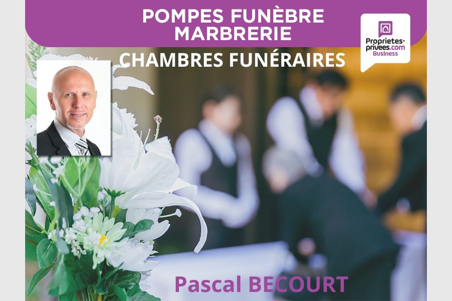 Pascal BECOURT vous propose cette entreprise Pompes funèbres sur un secteur dynamique comprenant, un bureau, un magasin, une entrée indépendante, une seconde entrée, une chambre funéraire avec une salle d’attente et deux salons, des toilettes indépendantes, un laboratoire, un garage. Climatisation réversible sur l’ensemble du local.