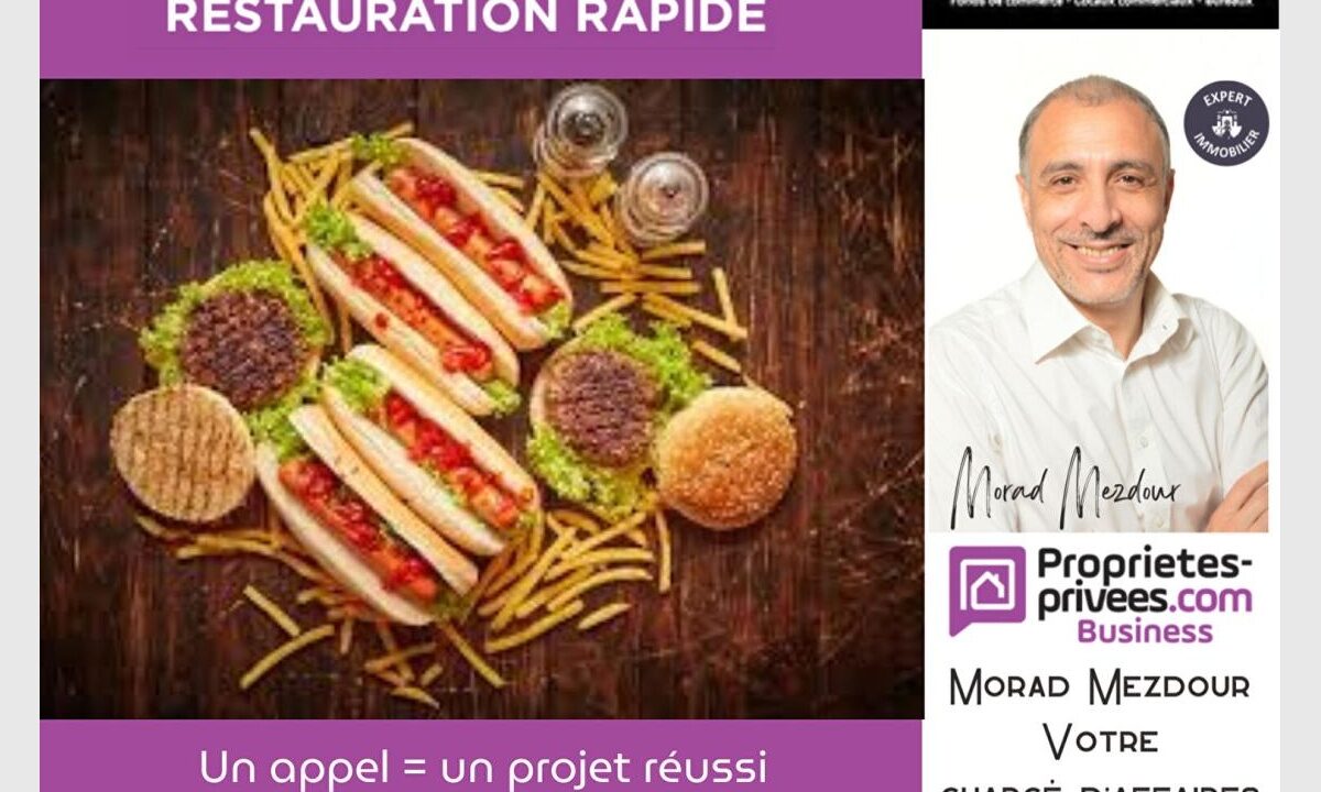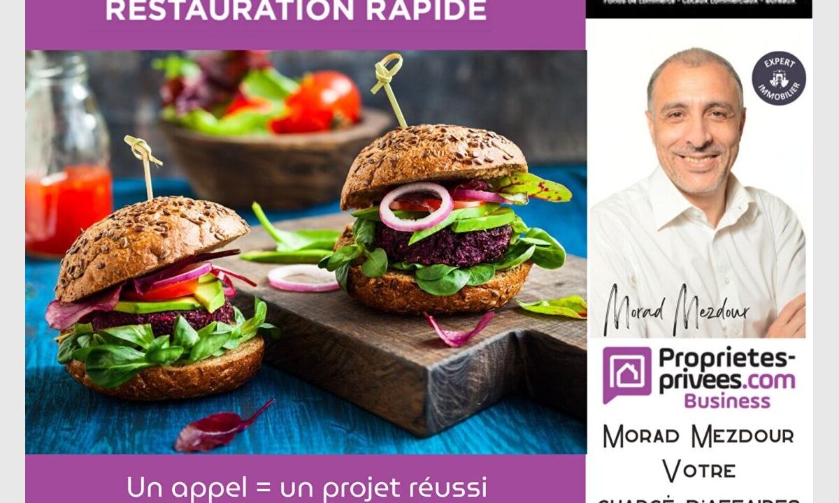 Morad MEZDOUR vous propose le fonds de commerce de ce Restaurant rapide ( Burgers, sandwichs, crousty poulet ) bénéficiant d’une forte visibilité avec un Bel emplacement d’angle. Cet établissement dispose de 20 couverts pour une surface totale de 70 m², d’une cuisine aux normes, un espace stockage, Possibilité terrasse 10 couverts. Chiffre d’affaires moyen de…